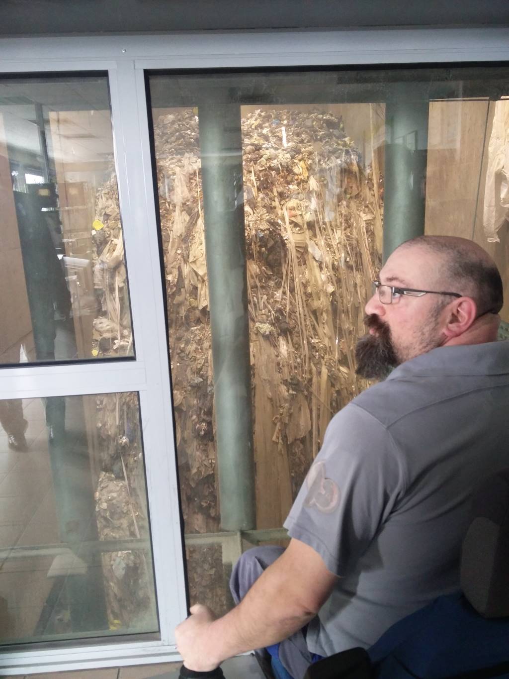 Ensuite, Sébastien MATHOS, a guidé l’ERET sur le site : visite du centre de tri et visite de l’Unité de Valorisation Énergétique (la salle de commande, la fosse de réception, les fours, les chaudières avec traitement des déchets, les cheminées, le turbo alternateur et les mâchefers).